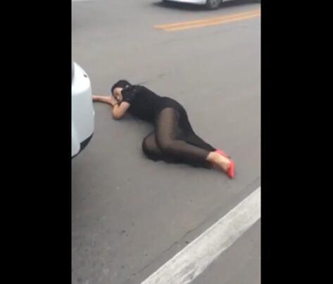 碰瓷女派出所门口用头猛撞路虎车,被警察抬走。(图片来自网络) 今天,一则奇葩的碰瓷视频在网上传火了。视频中,一名穿着黑色透视裙的女子,走到路中间的车前躺下。路人笑着对其说,“地上不热吗?”女子情绪激动地回答:“你给我2000块钱,再热我都能接受。”又有一路人劝道:“你快起来,别在这丢人现眼了。 随后,这名女子站起来,用头猛撞身前的车,一边撞一边说,“撞死就撞死。”连撞了6、7下,女子对疑似车主的路人说,“你让我撞死,你要付法律责任的。”女子的一番碰瓷不成功,仍然站在车来车往的路中间不肯走。 这时,几位警察同志上前,合力把她拉到路边。原来,女子碰瓷的地点就在派出所门口…… 不过,关于女子为何敢在派出所门口碰瓷,以及这段视频拍摄的具体时间,目前暂时不清楚。据知情人士判断,这段视频拍摄于安徽宿州南关派出所门口。