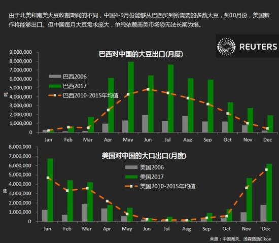 众所周知,农产品是美国的“命门”。作为世界上最大的农产品出口国,2017年美国农产品出口额创下历史新高,贸易顺差达到213亿美元。外媒指出,中国作为美国农产品重要的出口市场,一旦不选择美国农产品,中国买家可以选择从欧洲、南美或其他地方进口同类产品。 不买美国大豆巴西成主要取代国 大豆是中美贸易谈判的重要筹码,目前已经入中方拟对美加征关税清单,有较大可能被列入下一批制裁名单。 资料显示,美国62%的大豆销往中国。如果中国对美国大豆筑起贸易壁垒,将重创美国大豆出口。  美国大豆出口情况,红色为出口至中国 美国《华尔街日报》曾刊发社论指出,美国农产品在中国有很大的市场份额,美国每年向中国出售124亿美元的大豆,一旦爆发贸易战,有可能被巴西取代。 对此,巴西方面的确有些乐见其成。 巴西一家专门从事农业研究的智库分析称,中美之间的贸易摩擦将使得作为全球最大大豆出口国的巴西从中受益:可以预见中国将减少从美国进口大豆,而更多地转向巴西。2017年中国进口大豆的最大供应来源就是巴西,占进口总量的一半以上,美国大豆约占1/3。 由于市场预测中国可能最终削减美国大豆采购量,巴西的大豆价格目前已经出现上涨。在巴西巴拉纳瓜港,大豆的报价已经比国际参考价高出1美元/蒲式耳,创下3月的最高价。  中国对巴西和美国的月度大豆进口量变化 据该团队分析,目前来看,贸易争端对大豆的影响更多是心理层面。每年4-8月基本是南美的大豆主宰中国的货源,只在这一时段制裁的话,对于中国的产业链影响不大。 如果贸易争端进一步升级的话,南美能够供给中国的大豆数量大概7000多万吨,而中国的需求量大概9700万吨,仍存在几千万吨的供应缺口。缺口的满足可能通过三种途径满足: 第一,国储,数量机密,但预计可以满足缺口; 第二,从周边进口,如俄罗斯; 第三,寻找大豆的替代品,如肉类、植物油。 根据中信农业盛夏团队大豆专家电话会议纪要,美国大豆出口协会负责人表示,中方打出的“大豆牌”还只是姿态,并没有落实。今年阿根廷减产,总体南美受天气影响,减产1500万吨左右。总体来讲,从南美出来的大豆在每年4-8月主要供应中国市场,巴西今年1.13亿吨相比于去年有所增长,冲抵了其他国家的减少,实际的供应量还是充足的,去年也有大量库存,达千万吨级,可以支撑住全球的供应量。 相反,美国如果丢掉了中国市场,其他市场不能完全承接中国的市场份额。从美国整体情况来看,期末库存不断增加(现在1500万吨),今年度还得上调。  2014-2017年中国从美国进口大豆数量走势图 《华尔街日报》曾援引美国大豆协会主席海斯多费尔的声明称,如今美国农业收入与2013年相比已严重下降,正处在艰难复苏时期。美国农业部的数据显示,2017年美国的农场净收入预计连续第四年下滑至620亿美元,远低于2013年创纪录的1240亿美元。在此情况下,特朗普政府将矛头对准美国大豆业最大贸易伙伴,令人“极度沮丧”。 猪肉:巴西、俄罗斯眼馋欧洲、加拿大可取代 除大豆外,巴西肉类产品或也将受益。 今年两个月,巴西向中国的猪肉出口就实现同比增长139%。《环球时报》援引巴西动物蛋白协会主席弗朗西斯·图拉称,“中美贸易战将加大巴西肉类的国际需求,对我们来说是一个千载难逢的机会。” 不过,即便如此,巴西在中国猪肉进口的市场份额仍未能挤进前五。今年1月,德国、西班牙、加拿大、丹麦和荷兰位列中国猪肉进口的前五位,美国位列第六。 《环球时报》援引德国农业新闻网报道称,德国、西班牙和荷兰等国希望加大对中国的猪肉出口。由于中国买家采购主要是猪蹄和猪内脏等部位,这对大多数国家并没有什么价值。  此外,俄罗斯也对本国肉类出口中国寄予厚望。俄罗斯《观点报》报道称,俄罗斯中小企业社会组织“俄罗斯支柱”主席加里宁曾表示,“俄罗斯有机会把农产品出口到中国。这涉及猪肉、葡萄酒类产品和此前是美国对华出口重要产品之一的大豆。” 第一财经援引搜猪网首席分析师冯永辉认为,考虑到中国的进口猪肉可替代国家很多,比如德国、西班牙、丹麦、荷兰、法国、英国等欧盟国家,还有越南等东南亚国家,以及俄罗斯,因此填补中国进口的供需缺口,基本上没有问题。更何况,在中国这样的缺口还在下降。 对美国来说,虽然美国猪肉位列中国进口的第六位,但中国却是美国猪肉的第三大市场。过去十年间,美国的猪肉及制品出口到中国的量增加了近4倍。2017年,美国对中国出口近200亿美元农产品,其中美国的生猪产业对华出口11亿美元。  2016年,中国从美国进口猪肉约21.6万吨 《华尔街日报》称,如果贸易战打响,这11亿美元的猪肉出口份额,或被加拿大或欧洲取代。 此外,由于前两年,中美间猪肉价差明显,导致美国的出口贸易商、猪肉生产企业,都大量向中国出口猪肉,获利丰厚。因此,美国生猪养殖企业,在原有的基础上扩充了产能,而且在增加的产能中,有相当一部分是专门按照中国市场的需求定制的。如今,这些增加的产能,却因美国贸然打响贸易战而被加征25%关税,影响美国养殖户的未来经营收入。 美国猪肉生产者协会主席吉姆·海默尔说:“在这种针锋相对的贸易争端中,没人会是赢家,尤其是所有农场主和消费者。”特朗普同样也不一定是“赢家”,其或将在中期选举中失去优势。 葡萄酒:澳、法虎视眈