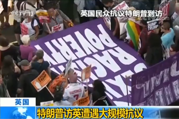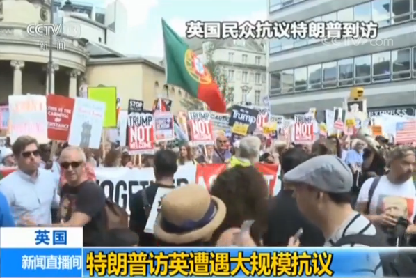 特朗普13号结束对英国为期两天的工作访问,这是他就任美国总统后首次对英国进行访问。特朗普访问期间,英国伦敦、牛津郡多地民众举行游行,抗议他的到访。据报道,仅在伦敦一座城市抗议者就达到了数万人。 特朗普在对英国两天的工作访问中,创下一些纪录: 一、迟到,上任一年半后才访问英国。 二、粗鲁无礼,肆意干涉英国内政。在接受太阳报专访时,轻率批评特雷莎梅的脱欧政策,称特雷莎梅没有按他的意思去推行脱欧。威胁说,按照目前的软脱欧思路,美国不会轻易和英国缔结新的自由贸易关系。在太阳报专访刊发后,慑于外界压力,又在新闻发布会上称赞特雷莎梅,许诺美英自由贸易协议不会遇到阻碍。三、抗议特朗普的人数超过了之前对其他美国总统的抗议规模。 央视记者 孔琳琳:大家看到这源源不断的人流,听到这持续不断的噪音,这正是特朗普访英期间不愿意看到,也不想听到的,不过这一切也正是英国民众对特朗普最真实的态度。 伦敦 抗议者:他(特朗普)认为自己什么都是对的,他根本不懂气候变暖的道理,他将会毁掉我们的地球,他让人们陷于分裂。 ​伦敦 抗议者:特朗普让我感觉很不好,他在美国做的事情让我震惊,他让儿童与家人分离,他不尊重女性权利,我认为有必要进行抗议。