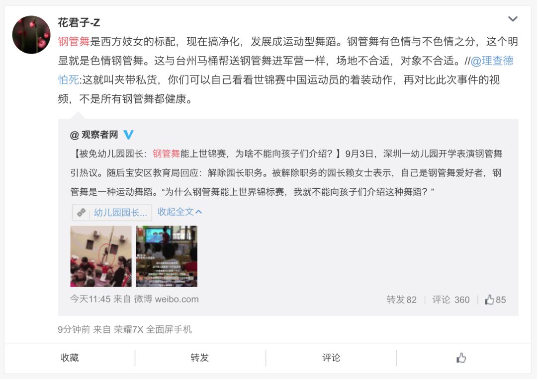 对此,很多网友其实都是很理智的, 直接说: “场地不合适,对象不合适。” “你们可以自己看看世锦赛中国运动员的着装动作,再对比此次事件的视频,不是所有钢管舞都健康。”